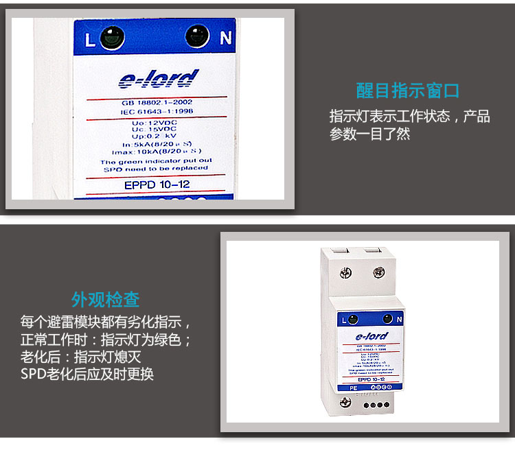 EPPD系列低壓直流型電源SPD是單體電源防雷模塊,防止感應(yīng)過電壓或操作過電壓對(duì)低壓交流用電設(shè)備的損壞。